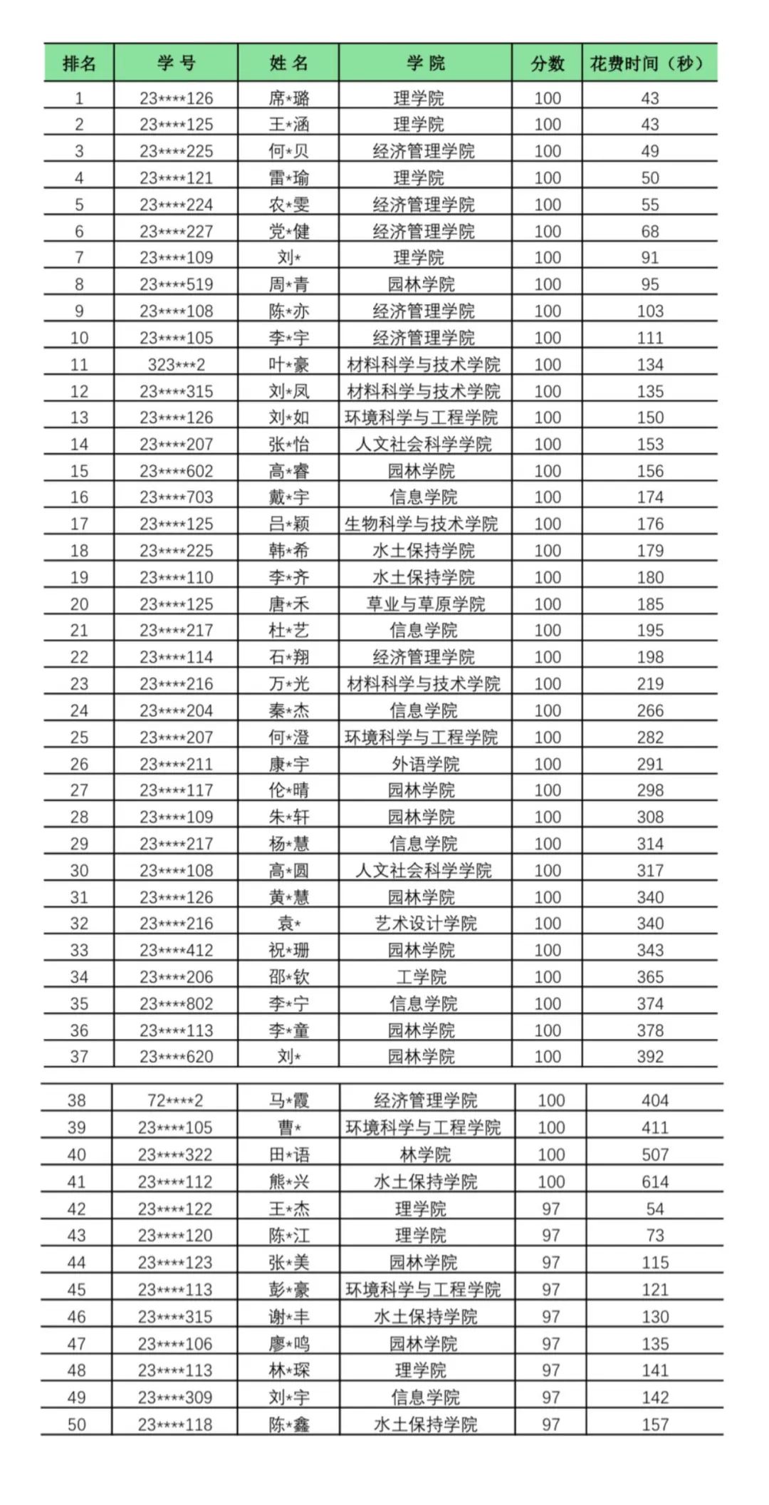 新绿有奖闯关的前50名获奖名单如下,快来找找你的名字吧~~