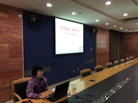 会上,张丰智副馆长给大家讲了《不忘初心 继续前行–––延安精神传承》党课。她从延安精神的内涵出发,多角度、多层次讲述了延安精神的历史地位,以及党的几代领导人在不同的历史时期对延安精神的进一步诠释。 让各位党员更深刻地了解了当时的历史现状、延安精神的“初心”、以及老一辈无产阶级革命家为了新中国的建立作出的奋斗和牺牲。课后大家进行了充分的交流座谈,更深刻地感悟到“撸起袖子加油干,一张蓝图绘到底”需要各位党员不忘初心,牢记使命,在自己的工作岗位上发扬传承延安精神。