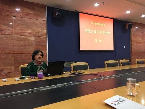 会上费青同志首先和大家交流了学习十九大报告的心得体会,重温开幕式激动人心的时刻。然后声情并茂地给大家上了一场精彩的党课《密战——保护中央文库》。她从档案、中央文库的概念解释出发,用一个个鲜活生动的案例,讲述了在隐蔽战线工作的老一辈无产阶级革命者,忠于党,忠于使命,用自己的青春乃至生命保护中国共产党早期文献的故事。让在座的党员穿越历史的时空,揭开尘封的档案,切身感受到老一辈无产阶级革命者不怕牺牲勇于奉献的光荣品格,让我们时刻牢记习近平总书记谆谆教诲,牢记新时代中国共产党人的历史使命,继承和发扬坚定理想信念,不怕牺牲,勇于担当,沿着新时代中国特色社会主义道路,永葆初心,永远奋斗。