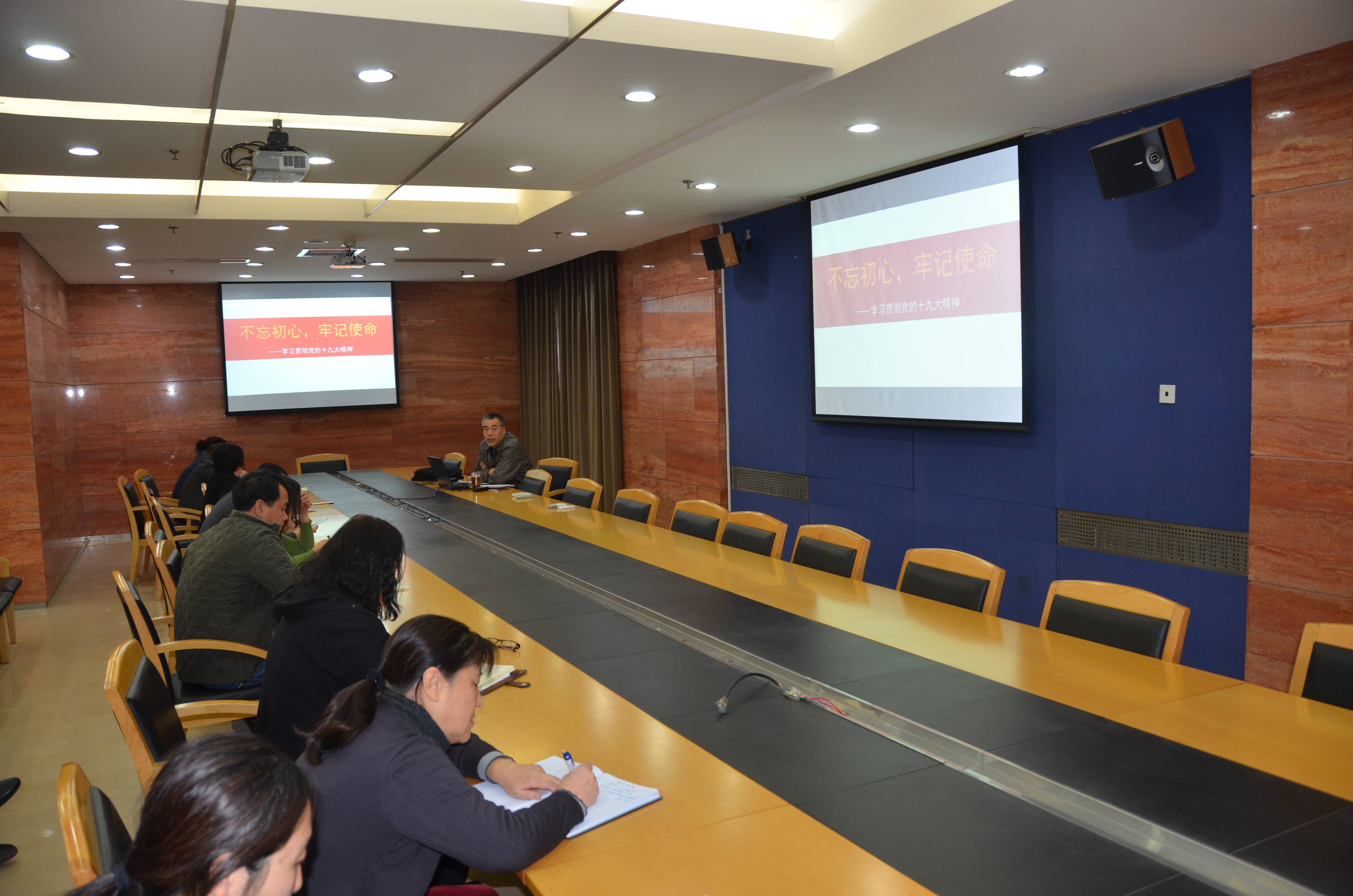 12月4日,图书馆党总支组织全体党员开展党的十九大精神专题学习。总支书记钟新春同志针对党章修改做了专题讲解。