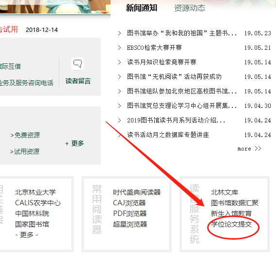 图书馆主页—“读者服务系统”--“学位论文提交系统”