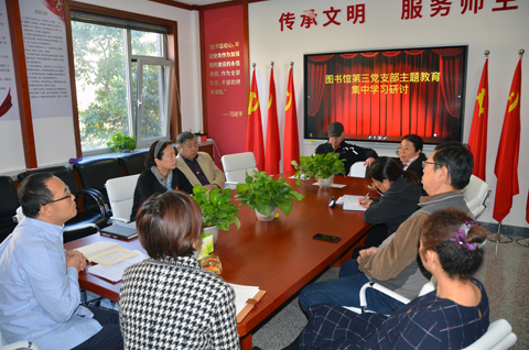图书馆第三党支部开展“不忘初心、牢记使命”主题教育集中学习研讨