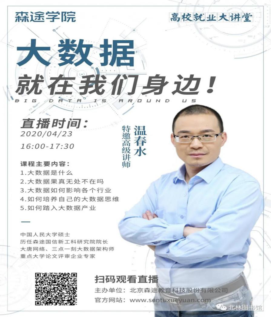 由森途学院主办的高校就业大讲堂,本期主题为《大数据就在我们身边》
