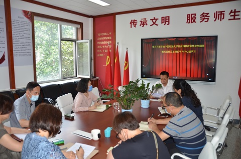 7月22日中午, 在205党建研讨室,图书馆党总支理论学习中心组专题学习研讨了习近平总书记给中国石油大学(北京)克拉玛依校区毕业生的重要回信。会议由图书馆党总支书记钟新春主持,中心组全体成员参加。