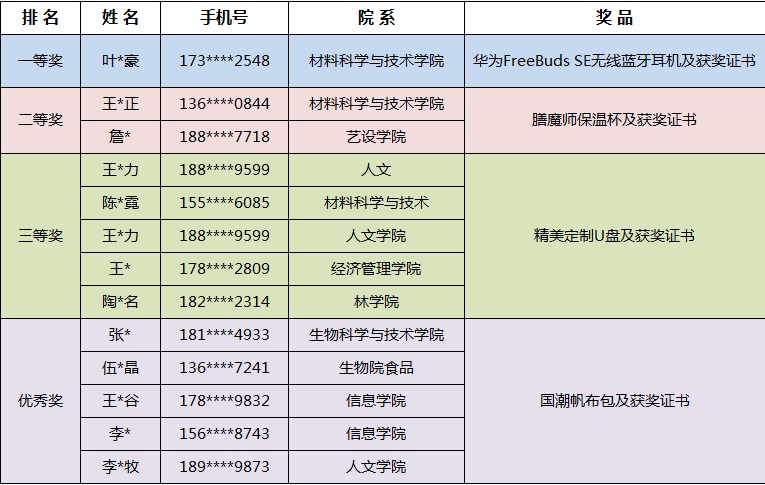 获奖名单如下: