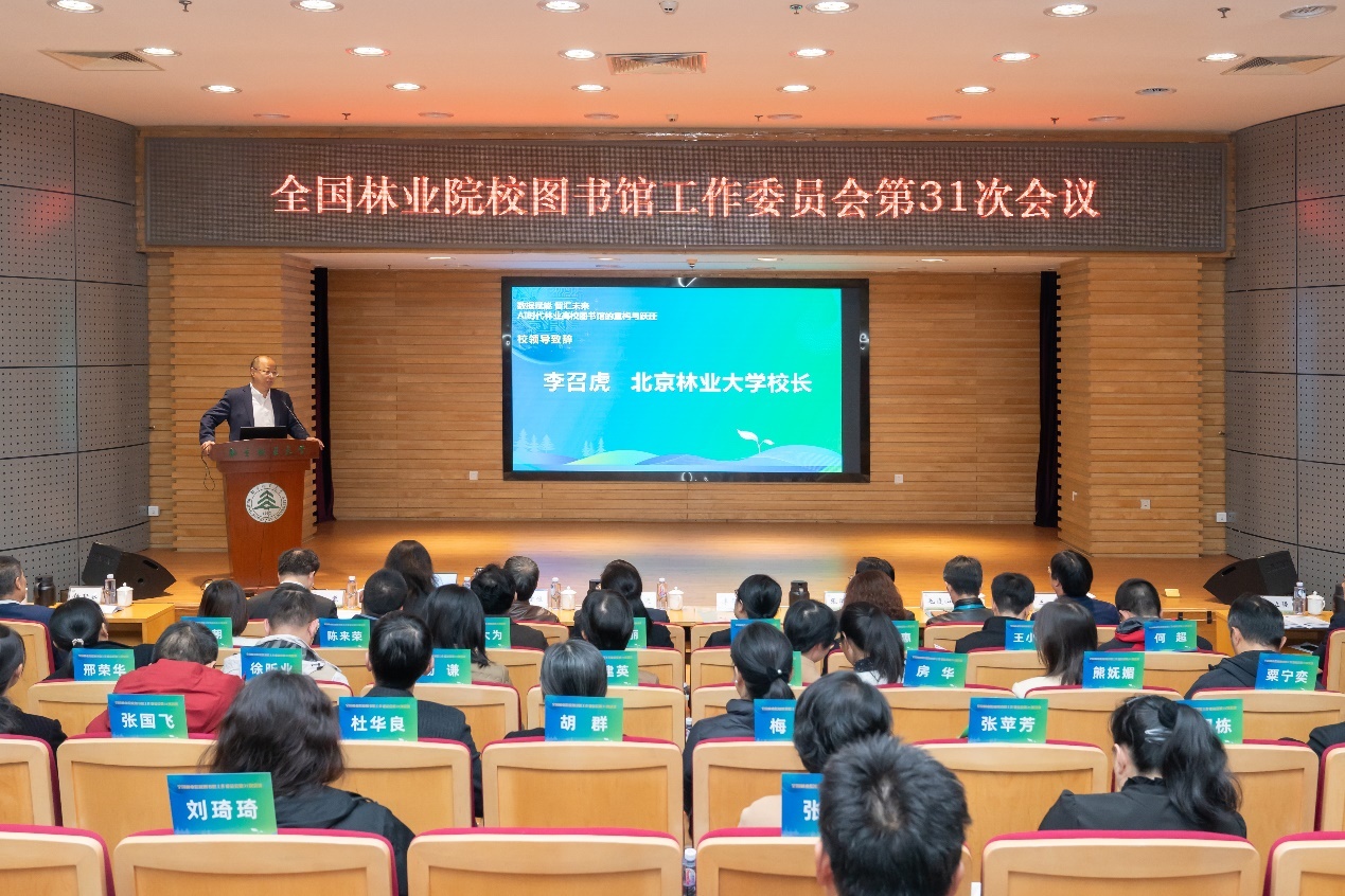 李召虎代表学校向与会代表致以热烈欢迎,并预祝大会圆满成功。他指出,全国林业院校图书馆工作委员会的召开,是林业高校图书情报事业薪火相传的重要见证,更是各林业院校携手服务生态文明建设的切实行动。他结合个人教学科研经历,分享了图书馆在其中所起的积极影响,分析了图书馆在林业院校发展历程中发挥的不可替代的作用。他强调,进入新时代,林业院校图书馆要坚持以习近平新时代中国特色社会主义思想为指导,深入贯彻习近平生态文明思想和习近平文化思想,积极应对科技发展带来的挑战,坚持实事求是的思想路线,切实把“以师生为中心”的发展理念落到实处。他希望,与会代表充分利用此次会议平台,深入交流思想、分享经验,凝聚共识、探索路径,共同擘画林业高校图书馆高质量发展的新蓝图,为林业院校的发展贡献应有的智慧与力量。