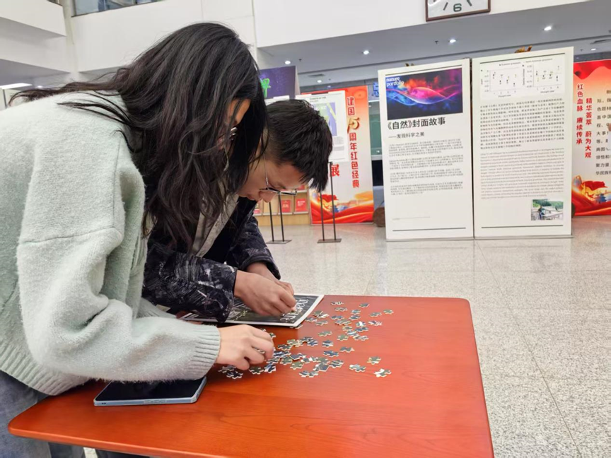 读书月活动以《自然》生态文明主题封面展暨学术报告会拉开序幕,邀请草学院庾强教授分享了科学研究方法、科研创新精神和意识、科研国际合作、联网实验研究和高水平论文撰写的心得体会,同时推出2024年度《自然》期刊封面展览,不仅可以体验《自然》期刊封面拼图,还可通过扫码形式了解封面背后的科研故事。