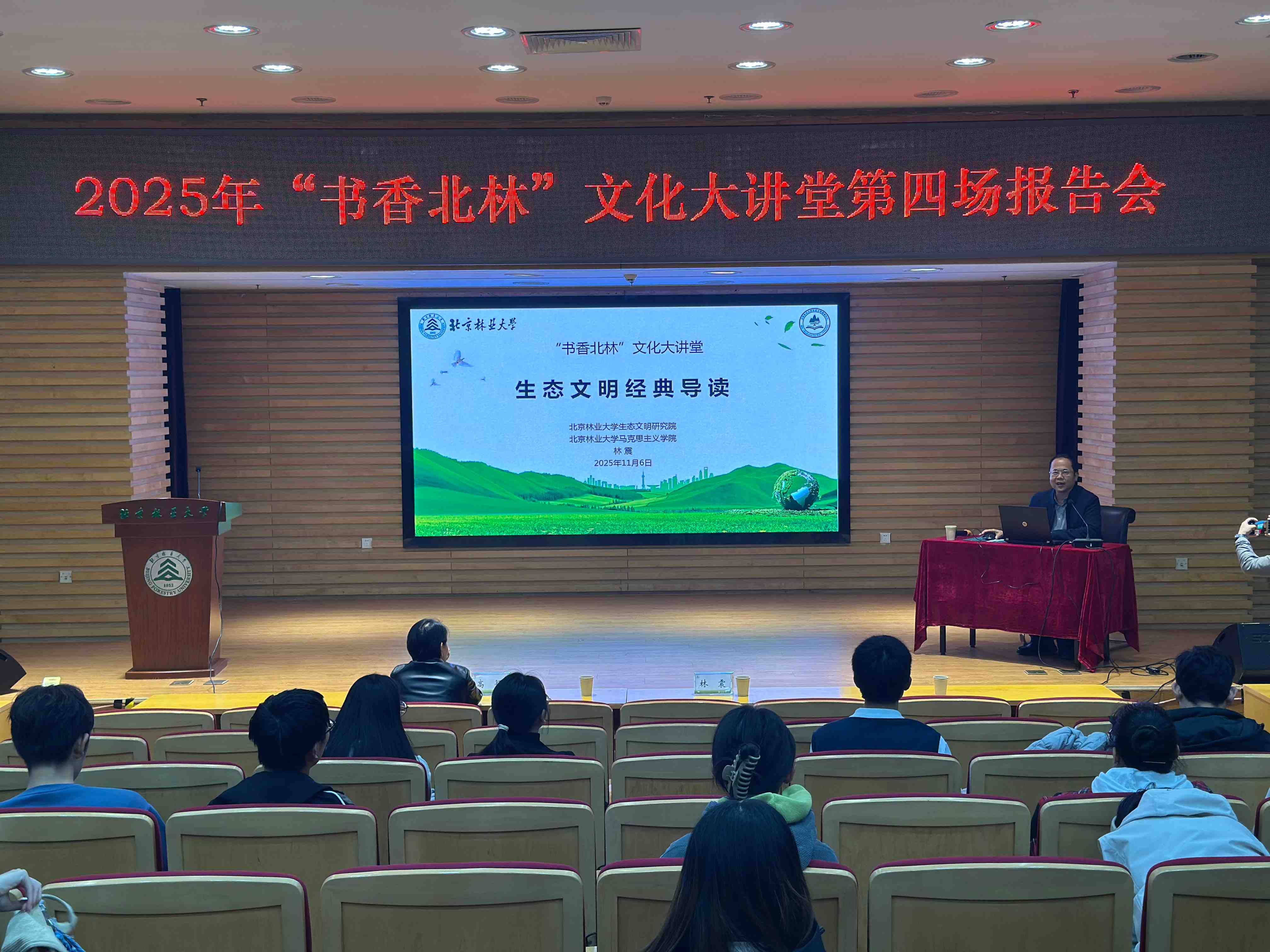 作为图书馆“书香北林”文化育人品牌活动的重要组成,本届文化大讲堂以宣传贯彻习近平文化思想为宗旨,以生态文明与中华优秀传统文化深度融合为特色,依托图书馆文献资源,通过四位重量级专家的深度分享,引导师生在文化滋养中厚植生态情怀,将绿色理念内化为价值准则。