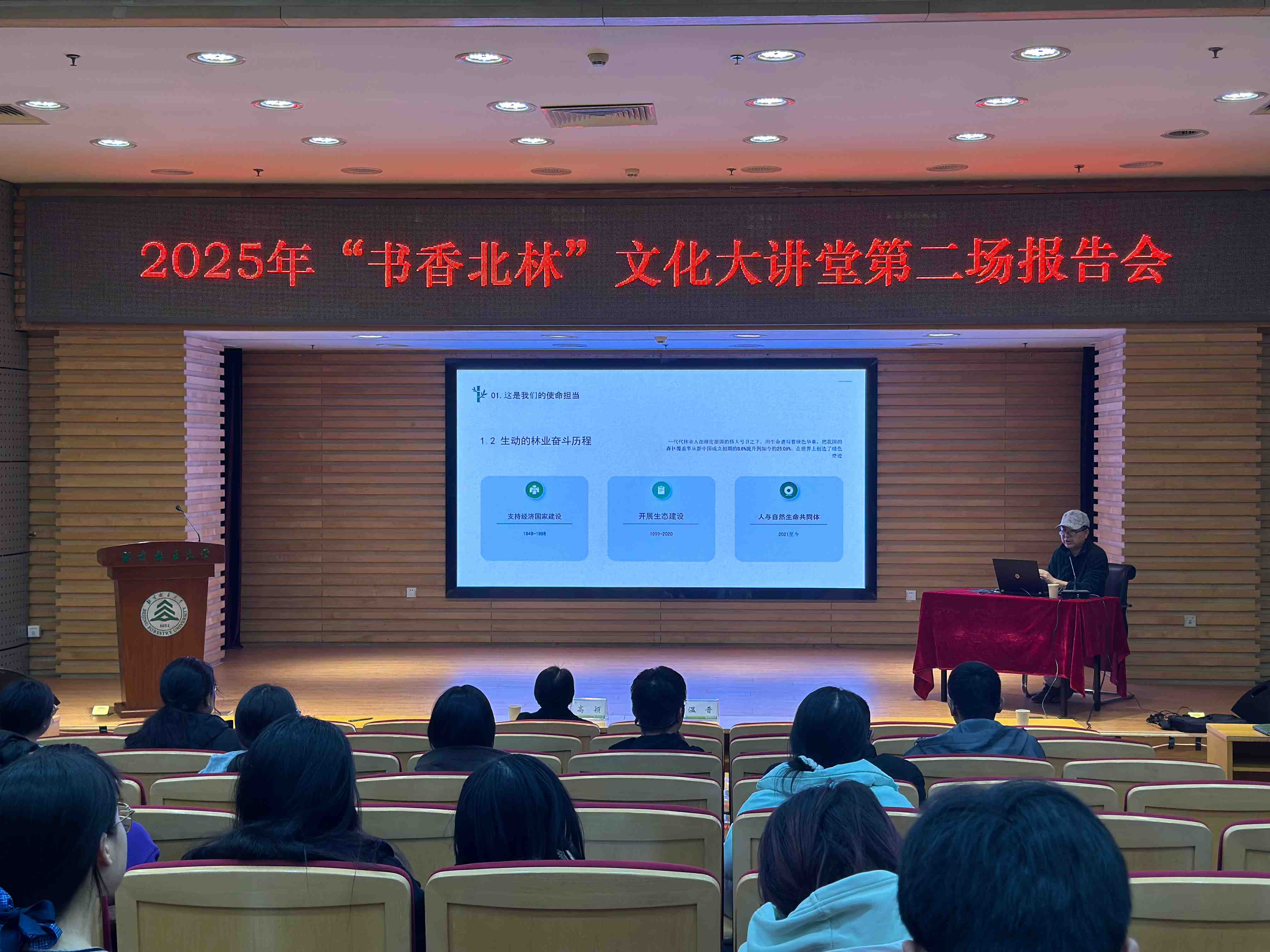 首场报告由中国国家图书馆理事会理事长韩永进研究馆员开启,他以《典籍文献的魅力与力量——漫谈中华优秀传统文化与读书学习》为题,系统阐释了典籍在中华民族历史进程中的重要地位和作用,引导师生从古籍中汲取读书治学的智慧。国家数字林业重点实验室原主任温晋编审带来《生态摄影与绿水青山》专题讲座,讲述了“从唯美到唯真”的摄影理念转变,解码“绿水青山就是金山银山”的实践密码。我校副教授、中央电视台《百家讲坛》主讲人耿晓杰副教授以《中国家具美学与文化》为题,系统梳理了不同时代家具背后的审美转型与文化逻辑,解读传统美学中的生态智慧与人文精神。我校生态文明研究院院长林震教授压轴主讲《生态文明经典导读》,从中华古典文献、国外近现代及当代中国文献三个维度,系统梳理了有关生态文明思想的经典文献,强调文化认同向生态自觉转化的重要意义。