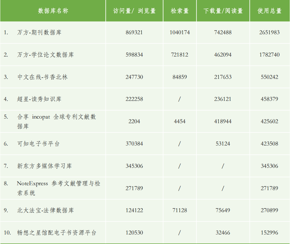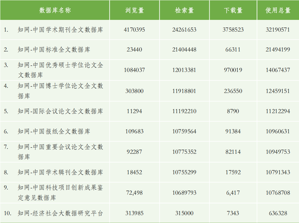 电子资源总使用量为1亿5063万余次,总下载量为782万余次。