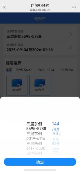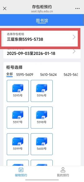 (3)选择柜子组后,点击想要选择的柜子编号,如编号较多,可以左右滑动。