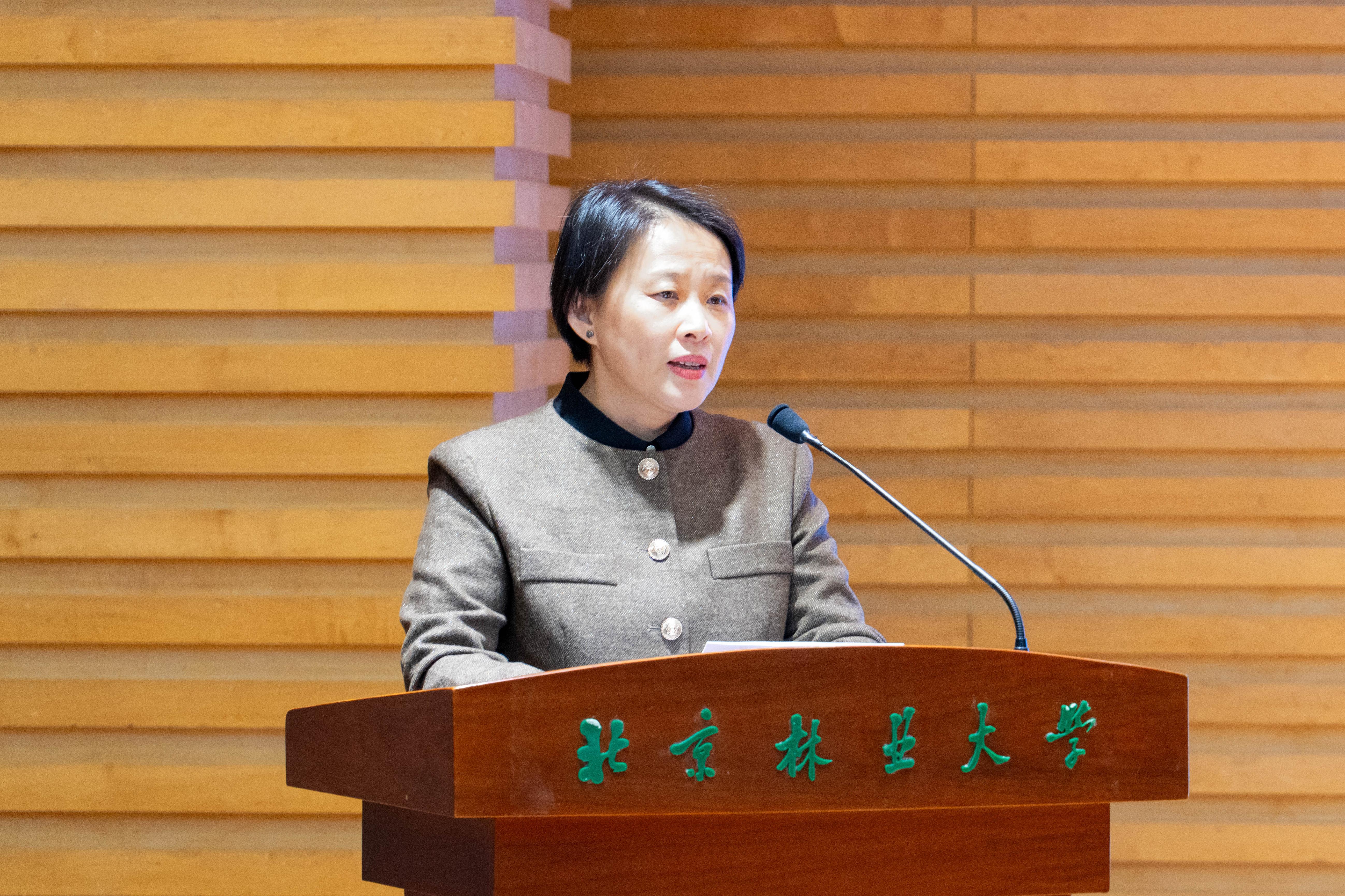 高颖介绍了第二届“书香北林”文化大讲堂活动的基本情况。她指出,本次活动是图书馆深入学习践行习近平文化思想和生态文明思想的重要载体,也是落实“立德树人”根本任务、推动文化育人走深走实的实际举措。活动力求将中华优秀传统文化与生态文明思想相结合,让师生在经典中读懂“生生不息”的生态哲学,并将文化认同转化为绿色自觉,让生态文明思想成为每一位北林人心中不灭的灯火、脚下坚定的路途。