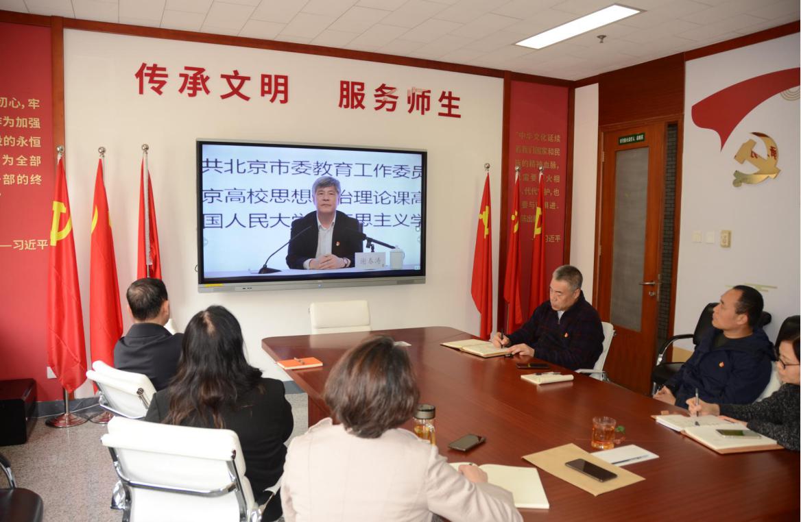 3月31日下午,在205党建室,图书馆党总支理论学习中心组全体成员开展集体学习,线上观看谢春涛教授的中共党史专题讲座——《中国共产党为什么能》,积极响应“首都百万师生同上一堂党课”活动。