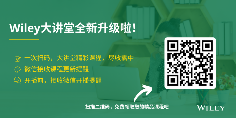 为了更好地帮助广大师生提高学术论文写作水平,提升投稿效率,及时洞悉学科发展前沿,“Wiley科研苑 | 学术大讲堂”精彩继续。2022年4月课程已全面上线,如果您对课程感兴趣,请扫描下方二维码订阅Wiley大讲堂系列活动,我们将在课程直播上新后及时为您发送课程提醒!