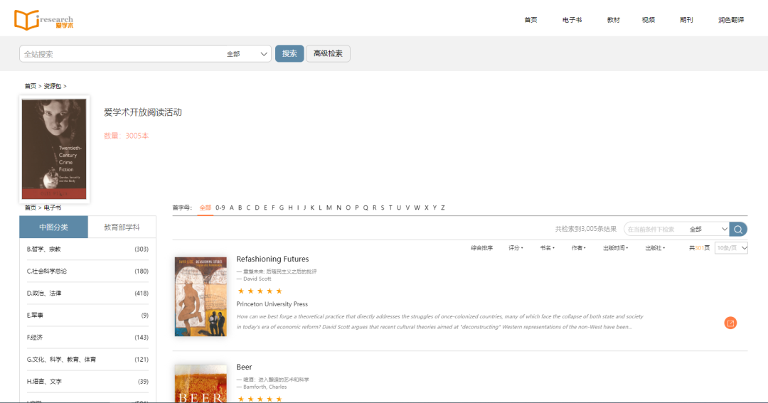 基于大学出版社在学术出版领域的重要地位,爱学术(iresearch)与多家拥有悠久历史与优质内容的国外知名大学出版社倾力合作,汇聚了丰富的大学社优质电子图书资源,在这个读书月,把它们带到读者面前。读者们可以在平台便捷访问到精选资源包,尽享这些来自国外领先大学出版社的知识盛宴!